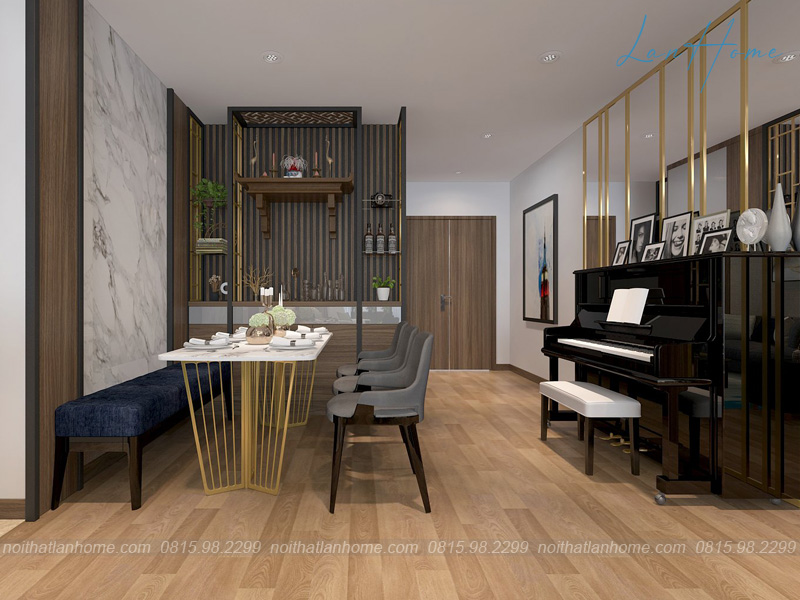 Chung cư nhà chị Trang - Sun Square thể hiện một không gian ấm cúng, là nơi tụ họp cho các thành viên sau một ngày làm việc đầy căng thẳng. Nhà đúng là nơi ta trở về, để cùng nhau sum vầy và trò chuyện, tâm sự tất cả mọi câu chuyện buồn vui thường ngày. Nhà là thứ gì đó bình dị, nhưng đi xa ai cũng nhớ về. LanHome đã biến ngôi nhà chị Trang trở nên lịch lãm mà vẫn không kém phần tươi mới, trẻ trung.