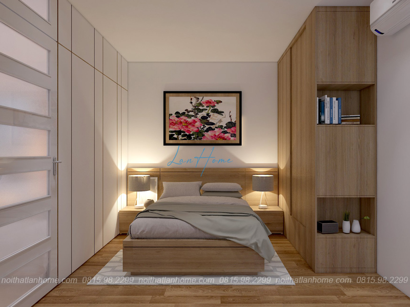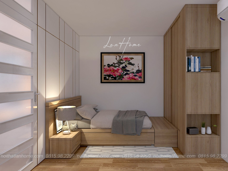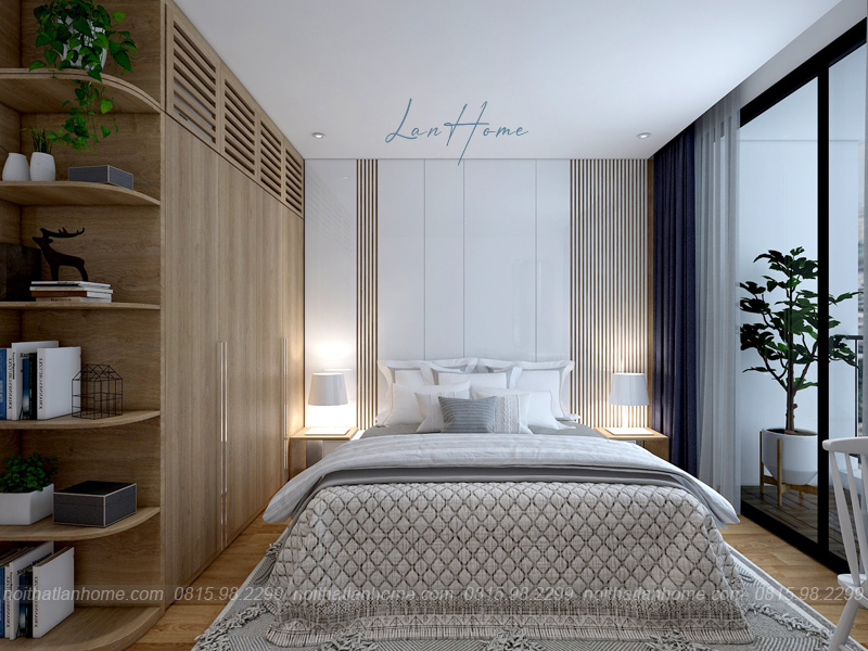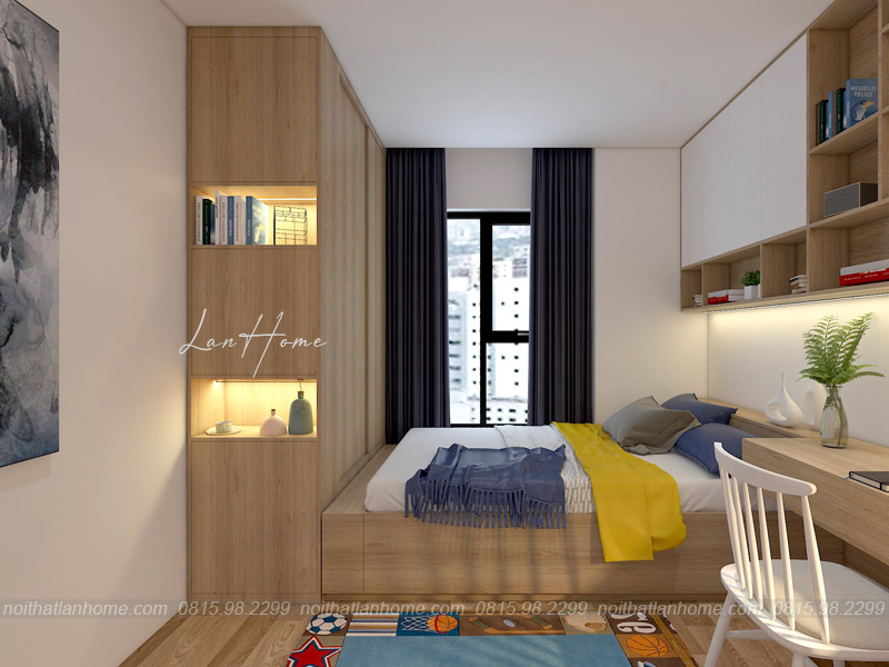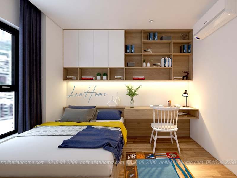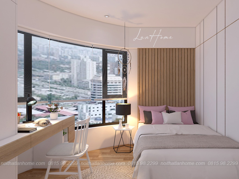 LanHome cẩn thận trong từng chi tiết, tỉ mẩn trong mỗi góc nhỏ tạo nên không gian vô cùng hoàn mỹ, vừa đẹp lại vừa tiện lợi. Phòng ngủ có kê thêm bàn để học, đọc sách hoặc làm việc và tủ quần áo.