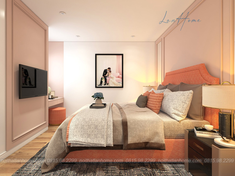 Sở hữu một phòng ngủ đẹp, êm ái luôn là mong muốn của tất cả mọi người. Hiểu được điều này, LanHome đã cố gắng và cho ra mắt những không gian phòng ngủ đầy tinh tế, lãng mạn và ấm cúng. Mời các bạn cùng tham khảo mẫu phòng ngủ sau:Sắc màu cam tạo sự ấm áp, mang lại một giấc ngủ thật ngon, thật sâu. Đây là phòng ngủ dành cho một cặp đôi uyên ương với bức ảnh cưới nổi bật, thiết kế hài hòa. Chắc hẳn phòng ngủ này sẽ khiến nhiều người mê mẩn đây.